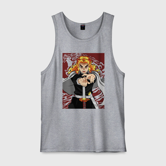 Мужская майка хлопок с принтом Огненный тигр Ренгоку