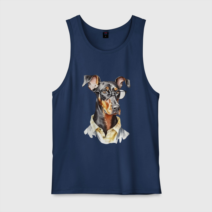 Мужская майка хлопок Доберман акварель