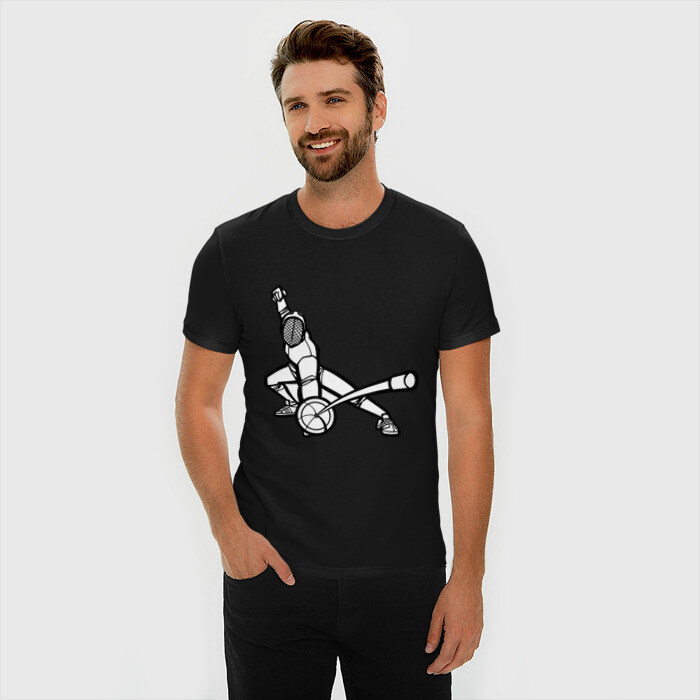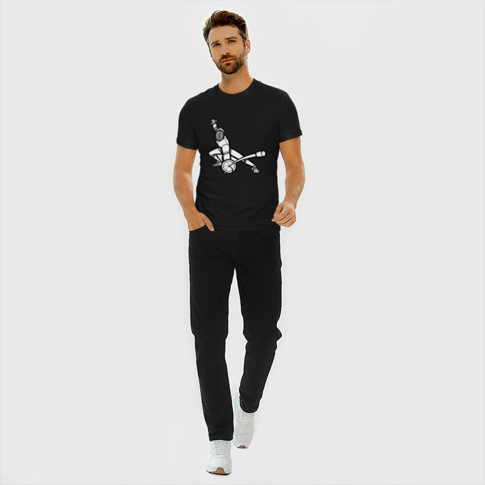 Футболка из плотного хлопка с добавлением лайкры: за счет этого ткань немного тянется, хорошо держит форму и комфортно садится по фигуре. Силуэт приталенный, ориентирован на мужчин с широкими плечами и узкими бедрами. Понравится тем, кто хочет подчеркнуть достоинства своего торса и любит футболки “по фигуре”.