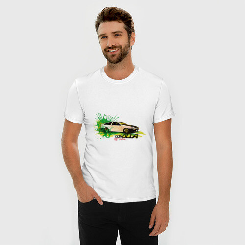 Футболка из плотного хлопка с добавлением лайкры: за счет этого ткань немного тянется, хорошо держит форму и комфортно садится по фигуре. Силуэт приталенный, ориентирован на мужчин с широкими плечами и узкими бедрами. Понравится тем, кто хочет подчеркнуть достоинства своего торса и любит футболки “по фигуре”.