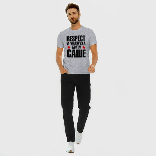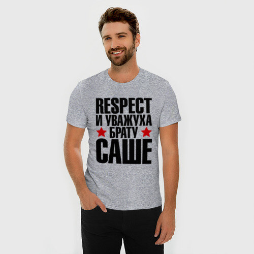 Мужская футболка премиум с принтом Respect и уважуха брату Саше