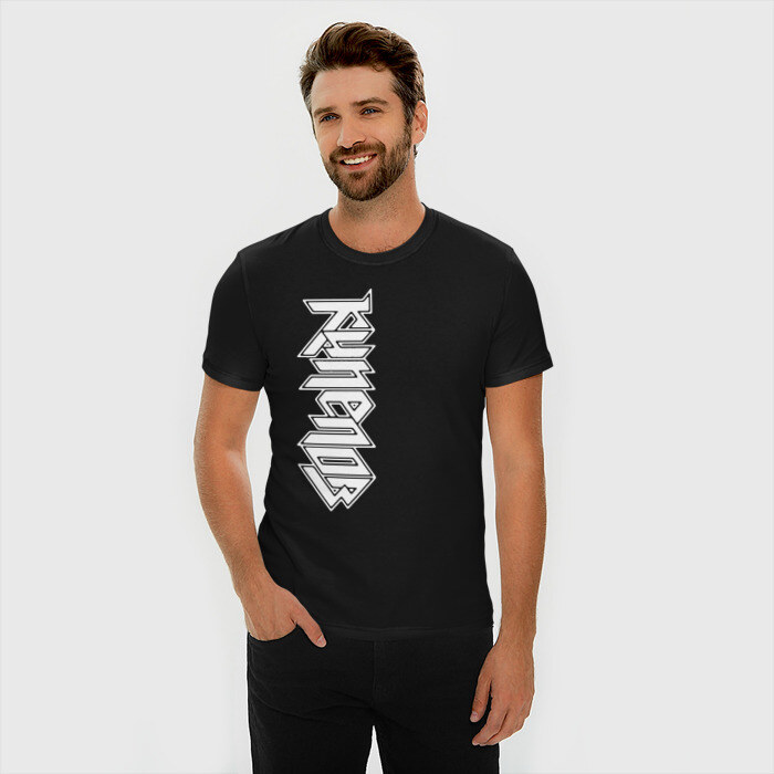 Футболка из плотного хлопка с добавлением лайкры: за счет этого ткань немного тянется, хорошо держит форму и комфортно садится по фигуре. Силуэт приталенный, ориентирован на мужчин с широкими плечами и узкими бедрами. Понравится тем, кто хочет подчеркнуть достоинства своего торса и любит футболки “по фигуре”.