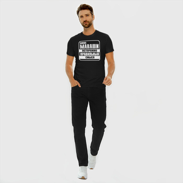 Футболка из плотного хлопка с добавлением лайкры: за счет этого ткань немного тянется, хорошо держит форму и комфортно садится по фигуре. Силуэт приталенный, ориентирован на мужчин с широкими плечами и узкими бедрами. Понравится тем, кто хочет подчеркнуть достоинства своего торса и любит футболки “по фигуре”.