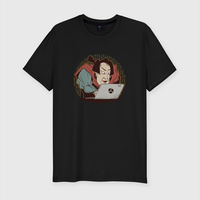 Мужская футболка хлопок Slim с принтом Самурай Кодер