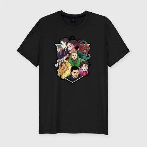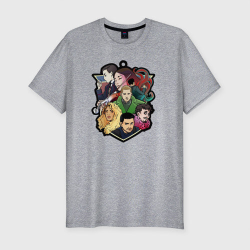 Футболка из плотного хлопка с добавлением лайкры: за счет этого ткань немного тянется, хорошо держит форму и комфортно садится по фигуре. Силуэт приталенный, ориентирован на мужчин с широкими плечами и узкими бедрами. Понравится тем, кто хочет подчеркнуть достоинства своего торса и любит футболки “по фигуре”.