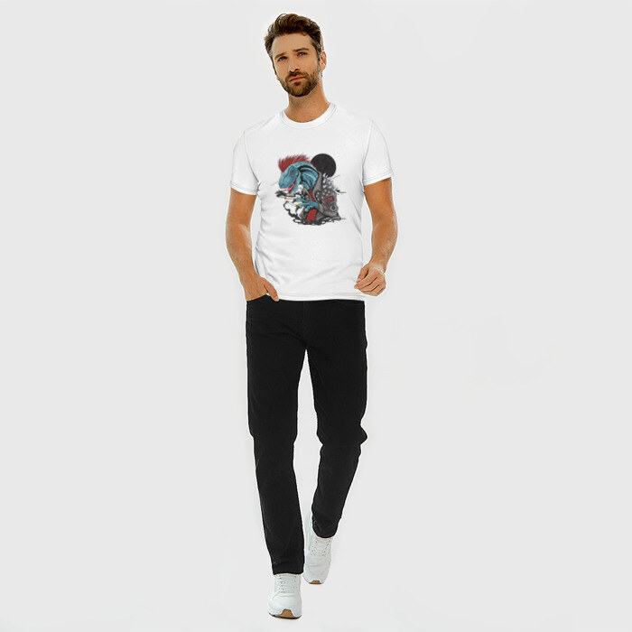 Мужская футболка хлопок Slim с принтом Динозавр панк