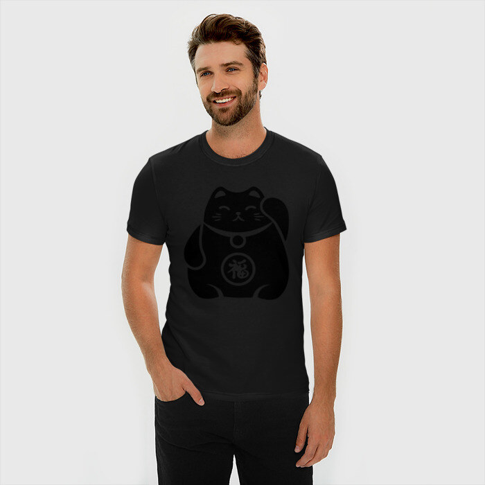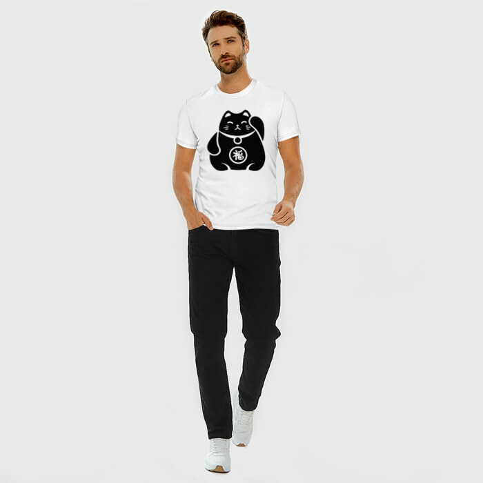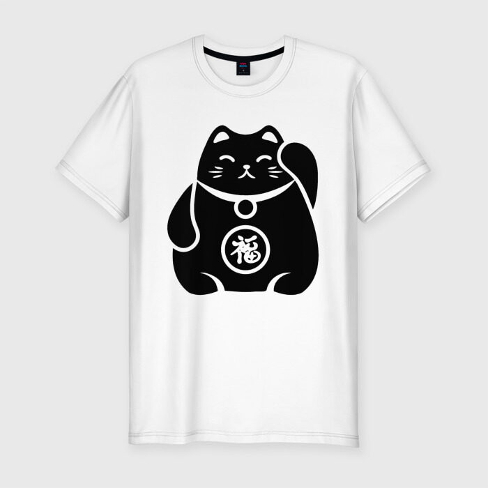 Мужская футболка хлопок Slim с принтом Манэки-нэко жирный