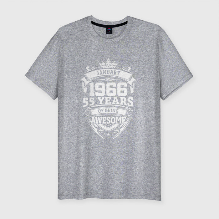 Мужская футболка хлопок Slim January 1966 55 Years