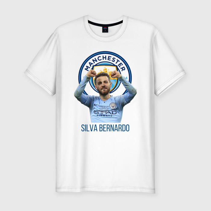 Мужская футболка хлопок Slim с принтом Silva Bernardo Манчестер Сити