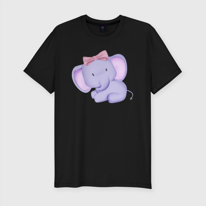 Мужская футболка хлопок Slim с принтом Милый Слонёнок С Бантиком