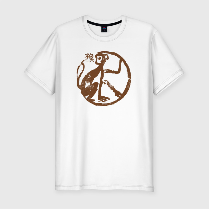 Мужская футболка хлопок Slim Зодиакальная обезьяна наскальный рисунок