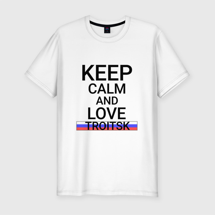 Мужская футболка хлопок Slim с принтом Keep calm Troitsk (Троицк)