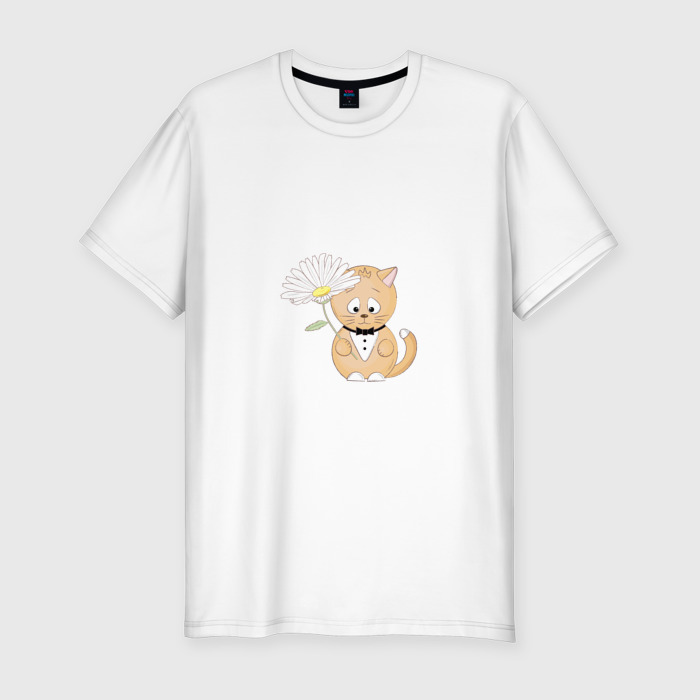 Мужская футболка хлопок Slim с принтом Рыжий кот с ромашкой