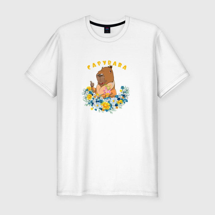 Мужская футболка хлопок Slim с принтом Прикольная надпись с капибарой