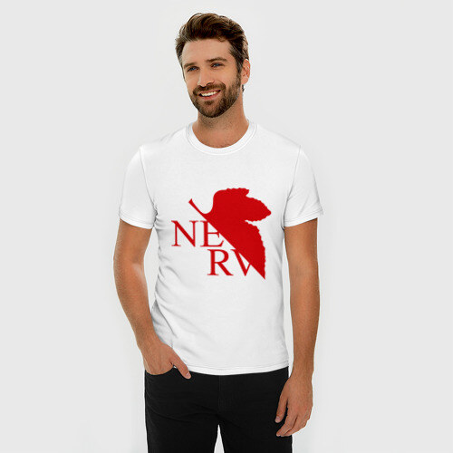 Футболка из плотного хлопка с добавлением лайкры: за счет этого ткань немного тянется, хорошо держит форму и комфортно садится по фигуре. Силуэт приталенный, ориентирован на мужчин с широкими плечами и узкими бедрами. Понравится тем, кто хочет подчеркнуть достоинства своего торса и любит футболки “по фигуре”.