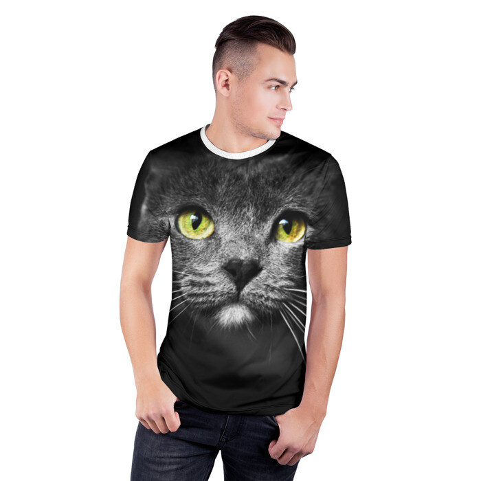 Мужская футболка 3D спортивная с принтом Кошачий взгляд