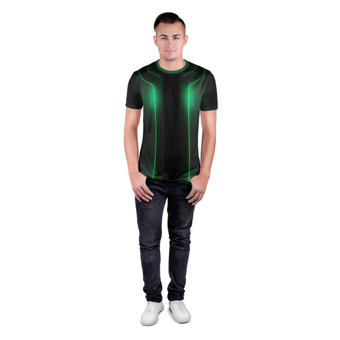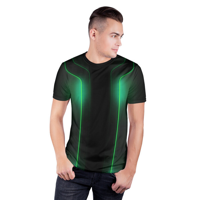 Футболка из синтетической премиум-ткани с улучшенными характеристиками: лучше пропускает воздух, влагу и быстро высыхает от тепла тела. Тянется, но сохраняет форму. За счет этих свойств особенно хороша для занятий спортом, но подойдет и для повседневной носки. Силуэт приталенный, ориентирован на мужчин с широкими плечами и узкими бедрами: понравится тем, кто хочет подчеркнуть достоинства своего торса и любит футболки “по фигуре”.  На ощупь футболки очень мягкие и приятные. Принт наносится по всей поверхности, можно заказать со своим дизайном.