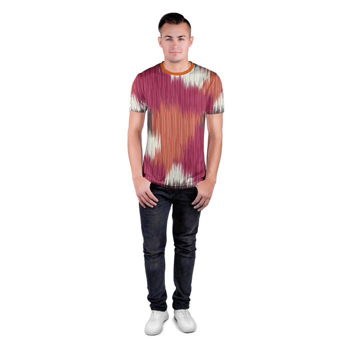 Футболка из синтетической премиум-ткани с улучшенными характеристиками: лучше пропускает воздух, влагу и быстро высыхает от тепла тела. Тянется, но сохраняет форму. За счет этих свойств особенно хороша для занятий спортом, но подойдет и для повседневной носки. Силуэт приталенный, ориентирован на мужчин с широкими плечами и узкими бедрами: понравится тем, кто хочет подчеркнуть достоинства своего торса и любит футболки “по фигуре”.  На ощупь футболки очень мягкие и приятные. Принт наносится по всей поверхности, можно заказать со своим дизайном.