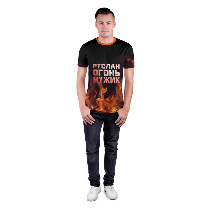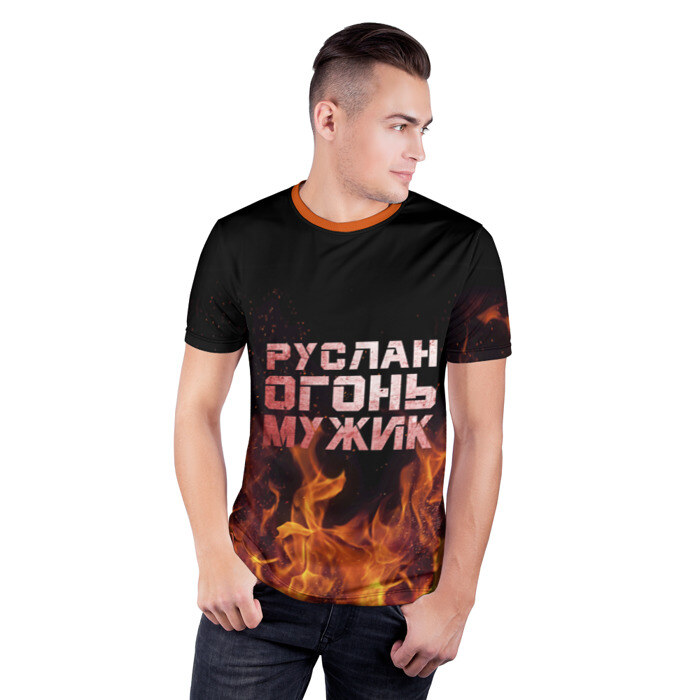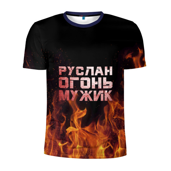 Мужская футболка 3D спортивная Руслан огонь мужик