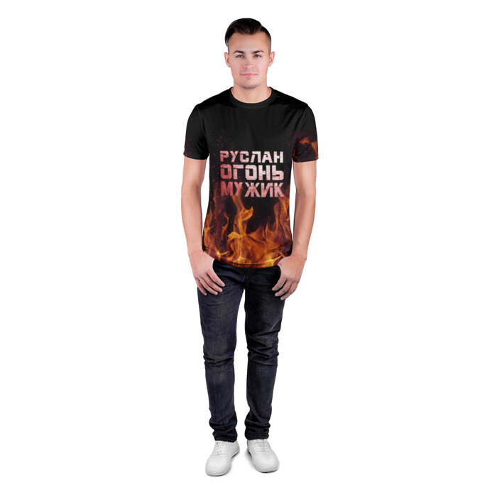 Мужская футболка 3D спортивная с принтом Руслан огонь мужик