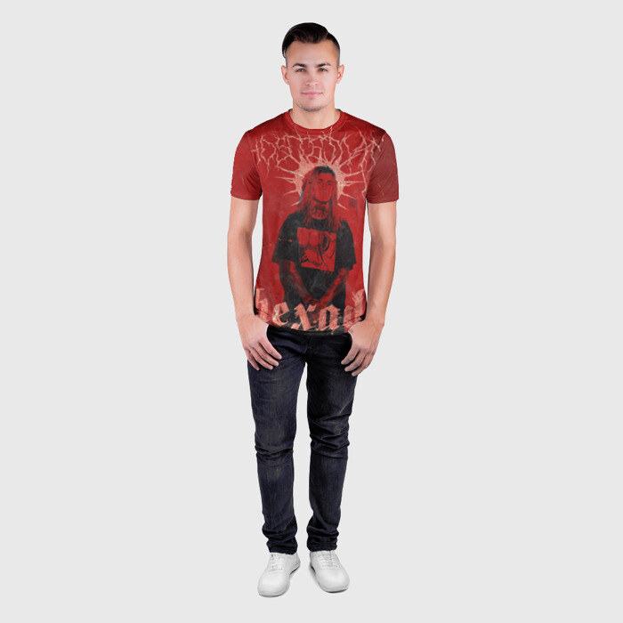 Футболка из синтетической премиум-ткани с улучшенными характеристиками: лучше пропускает воздух, влагу и быстро высыхает от тепла тела. Тянется, но сохраняет форму. За счет этих свойств особенно хороша для занятий спортом, но подойдет и для повседневной носки. Силуэт приталенный, ориентирован на мужчин с широкими плечами и узкими бедрами: понравится тем, кто хочет подчеркнуть достоинства своего торса и любит футболки “по фигуре”.  На ощупь футболки очень мягкие и приятные. Принт наносится по всей поверхности, можно заказать со своим дизайном.