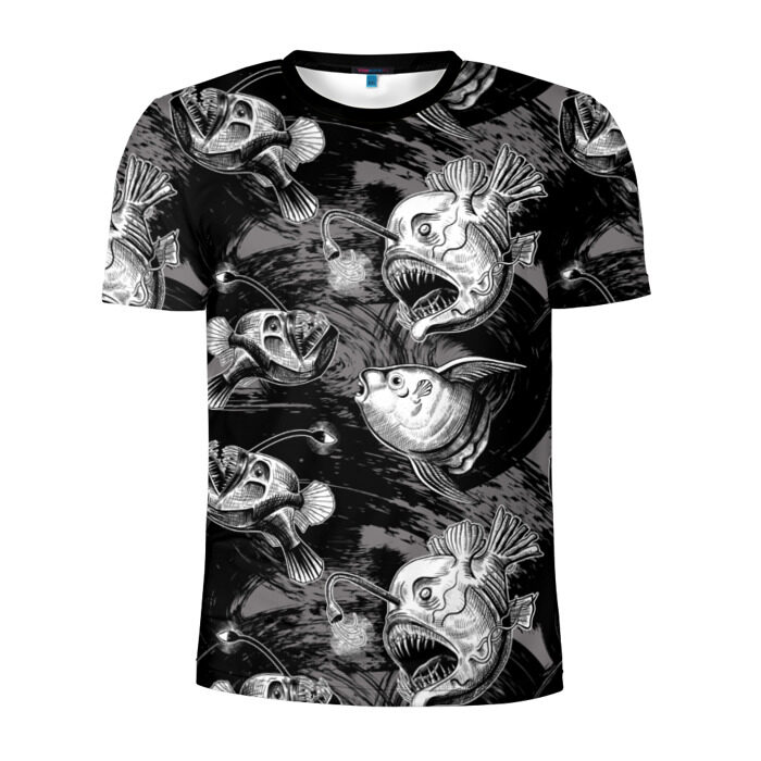 Мужская футболка 3D спортивная с принтом Глубоководные рыбы