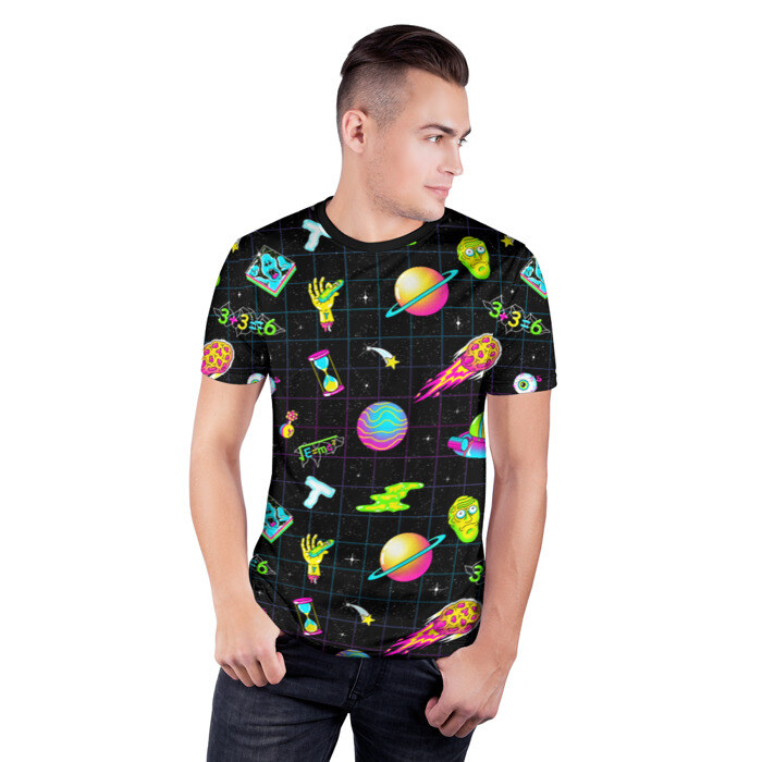 Мужская футболка 3D спортивная с принтом Rick and Morty universe