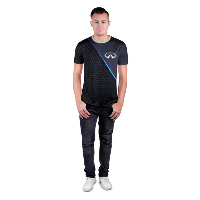 Футболка из синтетической премиум-ткани с улучшенными характеристиками: лучше пропускает воздух, влагу и быстро высыхает от тепла тела. Тянется, но сохраняет форму. За счет этих свойств особенно хороша для занятий спортом, но подойдет и для повседневной носки. Силуэт приталенный, ориентирован на мужчин с широкими плечами и узкими бедрами: понравится тем, кто хочет подчеркнуть достоинства своего торса и любит футболки “по фигуре”.  На ощупь футболки очень мягкие и приятные. Принт наносится по всей поверхности, можно заказать со своим дизайном.