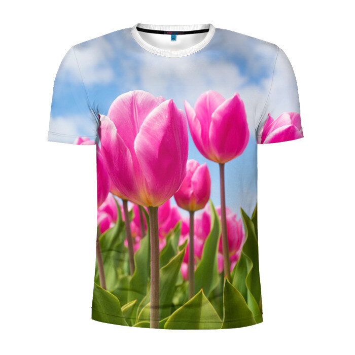 Мужская футболка 3D спортивная с принтом Розовые тюльпаны