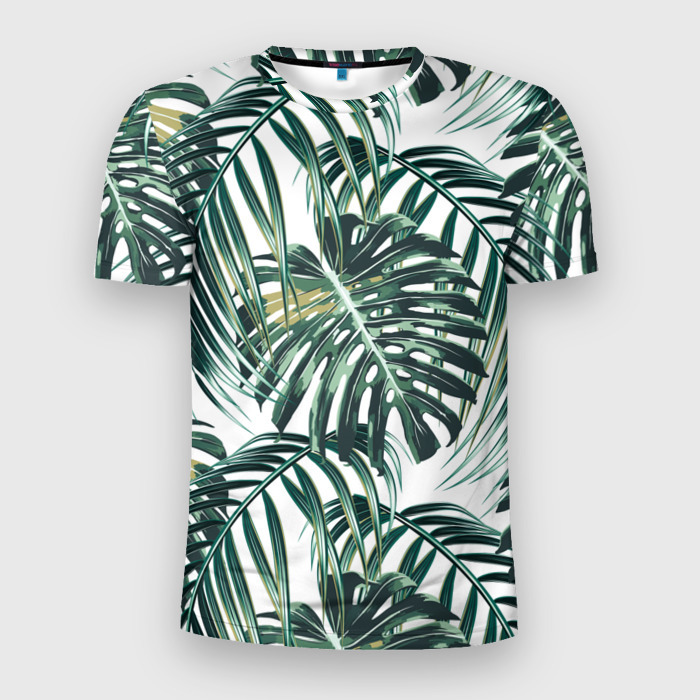 Мужская футболка 3D Slim с принтом Тропики (Зелень)