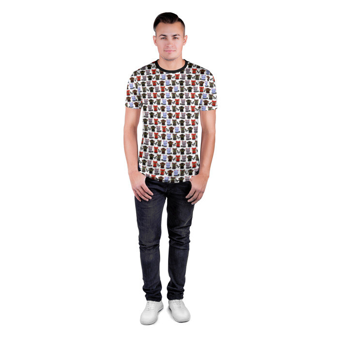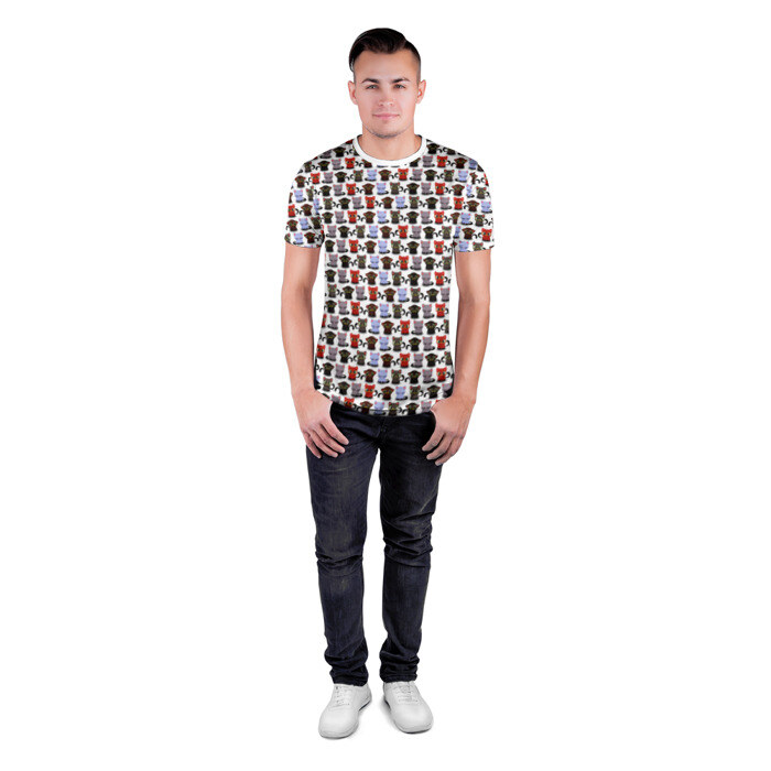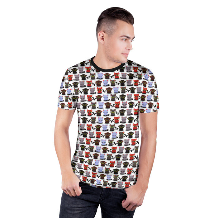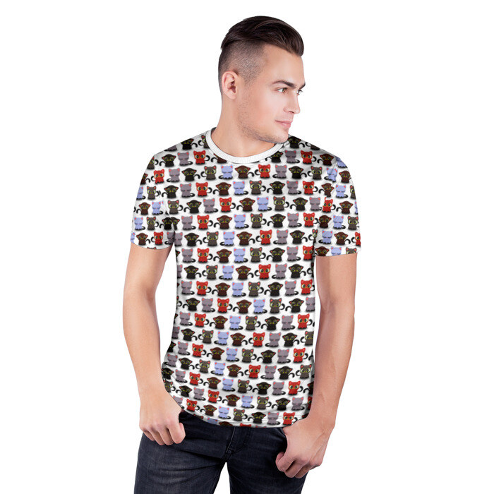 Футболка из синтетической премиум-ткани с улучшенными характеристиками: лучше пропускает воздух, влагу и быстро высыхает от тепла тела. Тянется, но сохраняет форму. За счет этих свойств особенно хороша для занятий спортом, но подойдет и для повседневной носки. Силуэт приталенный, ориентирован на мужчин с широкими плечами и узкими бедрами: понравится тем, кто хочет подчеркнуть достоинства своего торса и любит футболки “по фигуре”.  На ощупь футболки очень мягкие и приятные. Принт наносится по всей поверхности, можно заказать со своим дизайном.