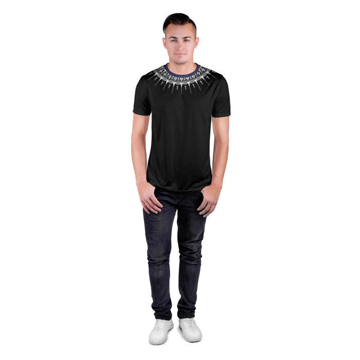 Футболка из синтетической премиум-ткани с улучшенными характеристиками: лучше пропускает воздух, влагу и быстро высыхает от тепла тела. Тянется, но сохраняет форму. За счет этих свойств особенно хороша для занятий спортом, но подойдет и для повседневной носки. Силуэт приталенный, ориентирован на мужчин с широкими плечами и узкими бедрами: понравится тем, кто хочет подчеркнуть достоинства своего торса и любит футболки “по фигуре”.  На ощупь футболки очень мягкие и приятные. Принт наносится по всей поверхности, можно заказать со своим дизайном.