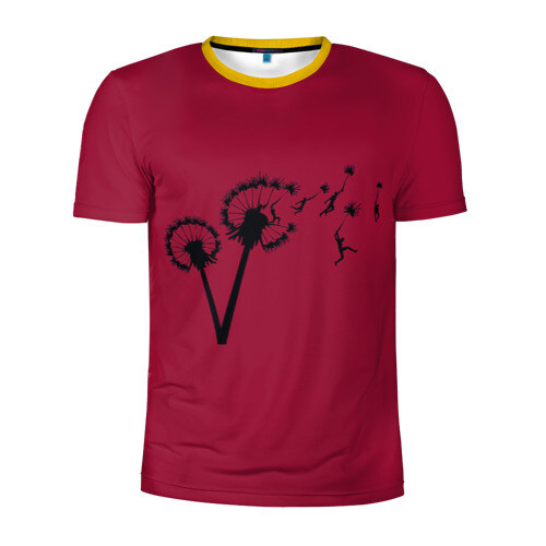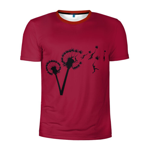 Мужская футболка 3D спортивная Dandelion flight. Red Frame