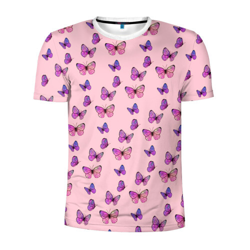 Мужская футболка 3D спортивная с принтом Бабочки фиолетовые 2