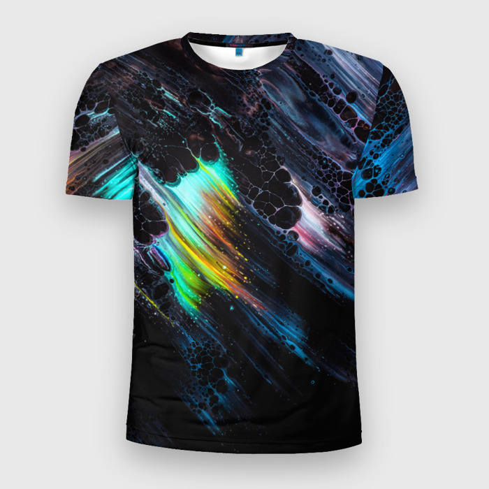 Мужская футболка 3D Slim с принтом Радужное северное сияние