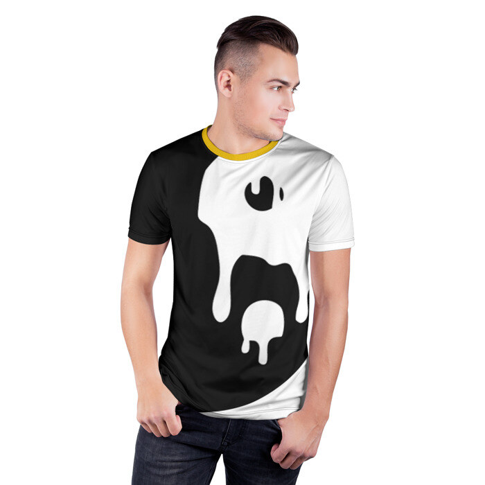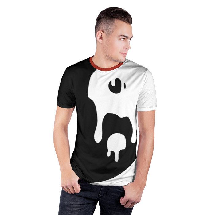 Футболка из синтетической премиум-ткани с улучшенными характеристиками: лучше пропускает воздух, влагу и быстро высыхает от тепла тела. Тянется, но сохраняет форму. За счет этих свойств особенно хороша для занятий спортом, но подойдет и для повседневной носки. Силуэт приталенный, ориентирован на мужчин с широкими плечами и узкими бедрами: понравится тем, кто хочет подчеркнуть достоинства своего торса и любит футболки “по фигуре”.  На ощупь футболки очень мягкие и приятные. Принт наносится по всей поверхности, можно заказать со своим дизайном.
