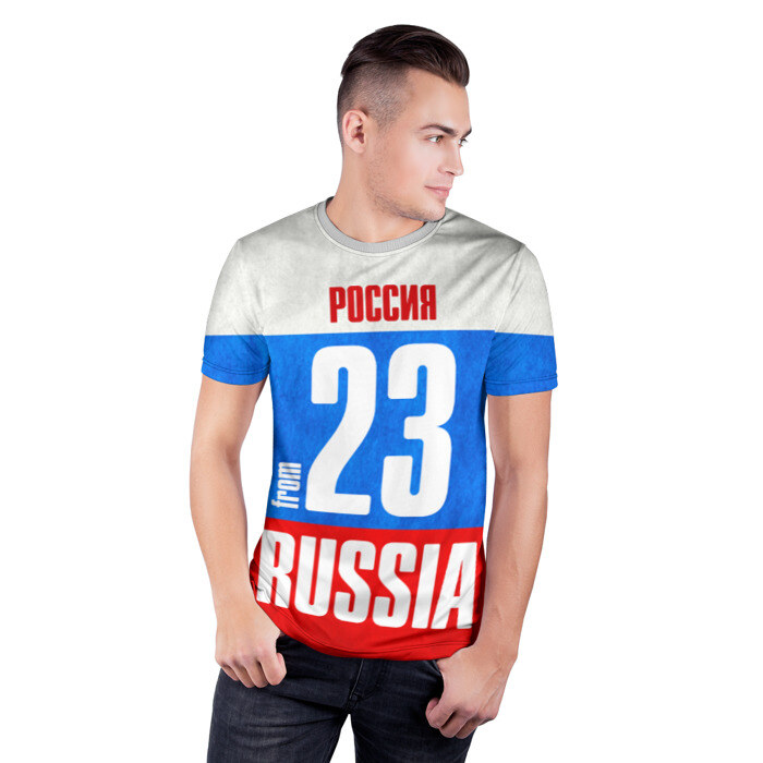 Футболка из синтетической премиум-ткани с улучшенными характеристиками: лучше пропускает воздух, влагу и быстро высыхает от тепла тела. Тянется, но сохраняет форму. За счет этих свойств особенно хороша для занятий спортом, но подойдет и для повседневной носки. Силуэт приталенный, ориентирован на мужчин с широкими плечами и узкими бедрами: понравится тем, кто хочет подчеркнуть достоинства своего торса и любит футболки “по фигуре”.  На ощупь футболки очень мягкие и приятные. Принт наносится по всей поверхности, можно заказать со своим дизайном.