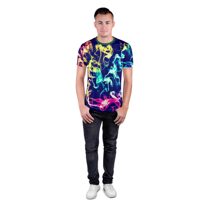 Футболка из синтетической премиум-ткани с улучшенными характеристиками: лучше пропускает воздух, влагу и быстро высыхает от тепла тела. Тянется, но сохраняет форму. За счет этих свойств особенно хороша для занятий спортом, но подойдет и для повседневной носки. Силуэт приталенный, ориентирован на мужчин с широкими плечами и узкими бедрами: понравится тем, кто хочет подчеркнуть достоинства своего торса и любит футболки “по фигуре”.  На ощупь футболки очень мягкие и приятные. Принт наносится по всей поверхности, можно заказать со своим дизайном.