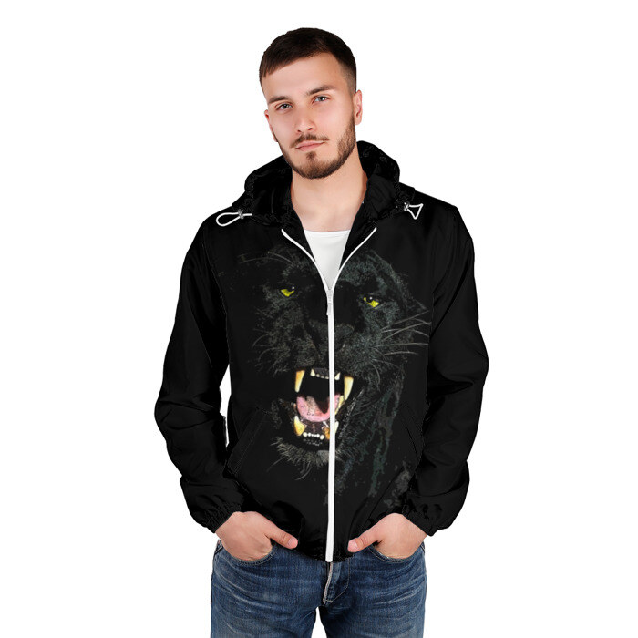 Свободная легкая ветровка с капюшоном, застегивается на молнию. Сшита из плотной ткани, по всей поверхности которой наносится принт. Можно заказать со своим дизайном.