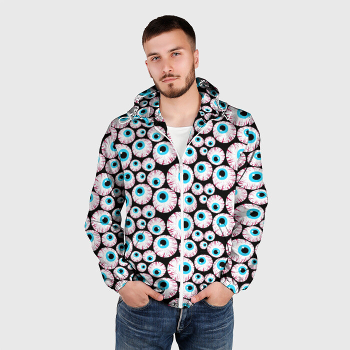 Свободная легкая ветровка с капюшоном, застегивается на молнию. Сшита из плотной ткани, по всей поверхности которой наносится принт. Можно заказать со своим дизайном.