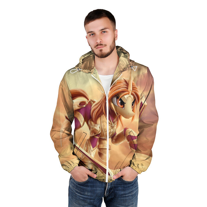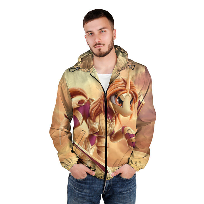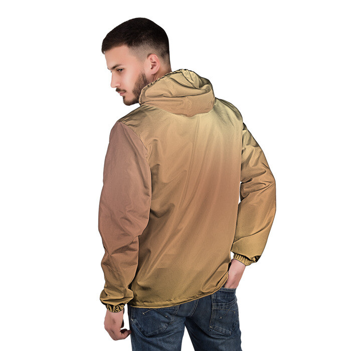 Свободная легкая ветровка с капюшоном, застегивается на молнию. Сшита из плотной ткани, по всей поверхности которой наносится принт. Можно заказать со своим дизайном.
