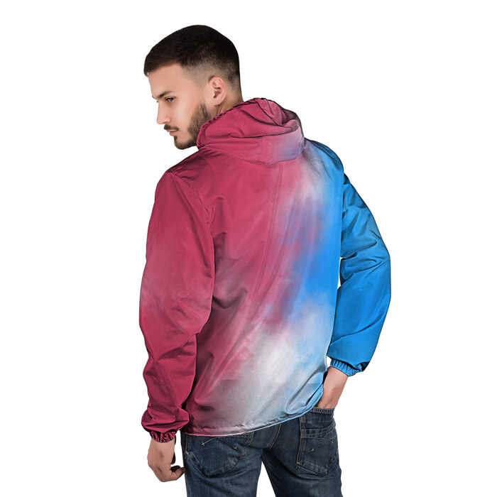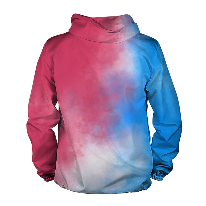 Свободная легкая ветровка с капюшоном, застегивается на молнию. Сшита из плотной ткани, по всей поверхности которой наносится принт. Можно заказать со своим дизайном.