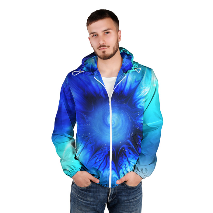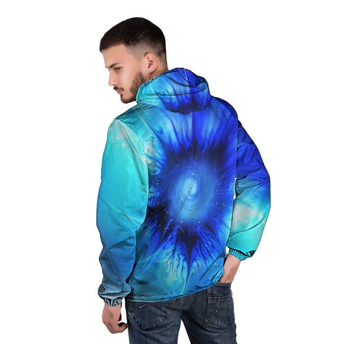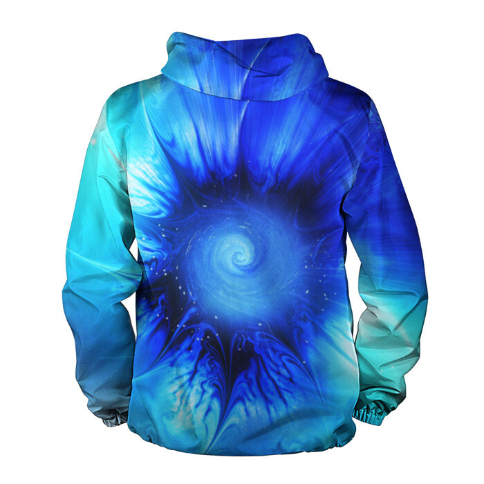 Свободная легкая ветровка с капюшоном, застегивается на молнию. Сшита из плотной ткани, по всей поверхности которой наносится принт. Можно заказать со своим дизайном.