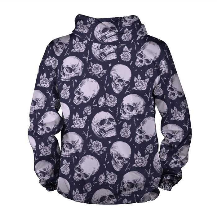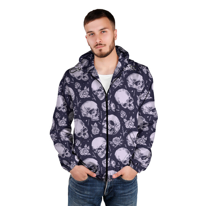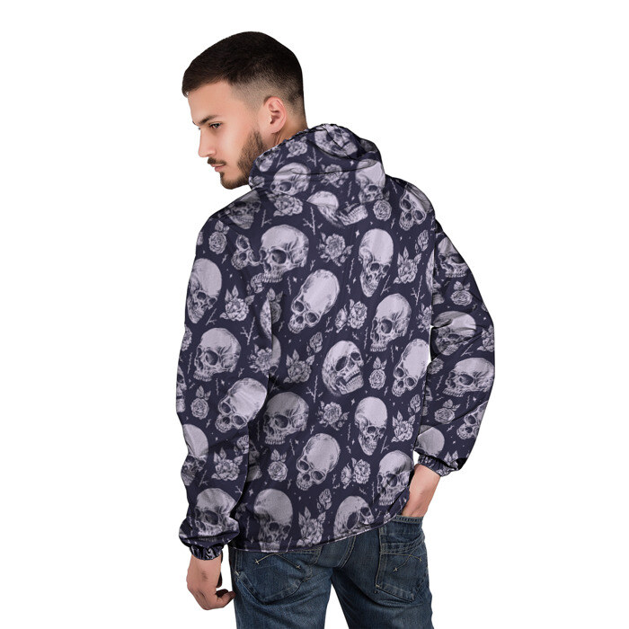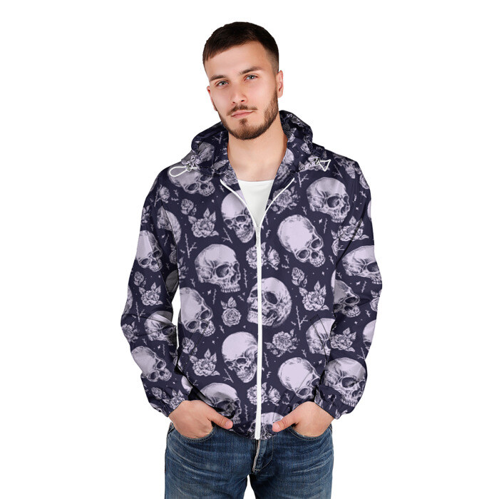 Мужская ветровка 3D с принтом Мрачные черепа с розами