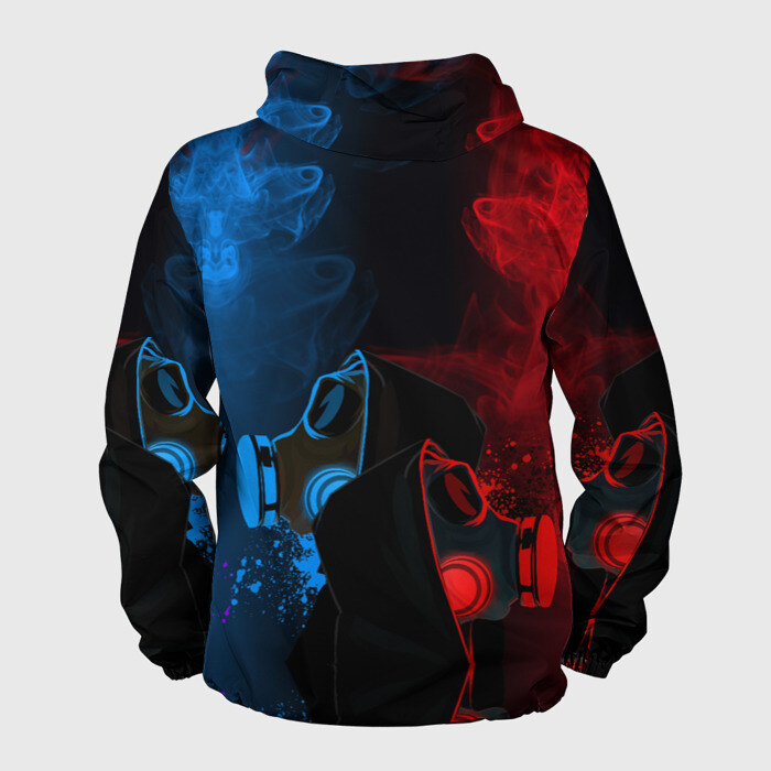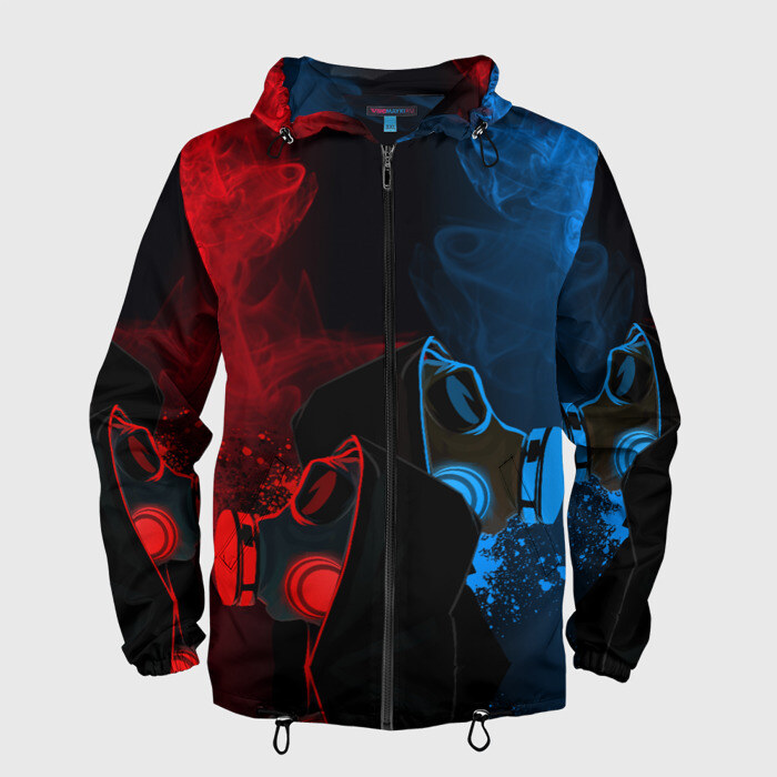 Свободная легкая ветровка с капюшоном, застегивается на молнию. Сшита из плотной ткани, по всей поверхности которой наносится принт. Можно заказать со своим дизайном.