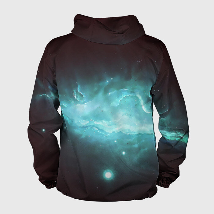 Свободная легкая ветровка с капюшоном, застегивается на молнию. Сшита из плотной ткани, по всей поверхности которой наносится принт. Можно заказать со своим дизайном.