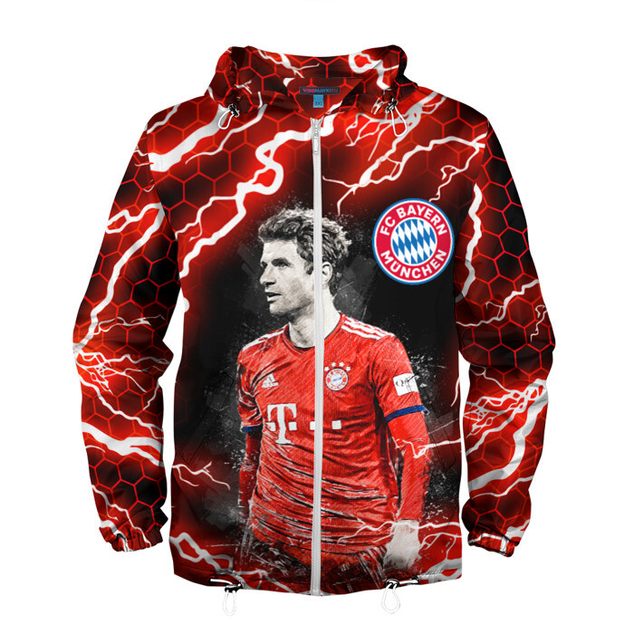 Мужская ветровка 3D с принтом ТОМАС МЮЛЛЕР / БАВАРИЯ / МОЛНИЯ