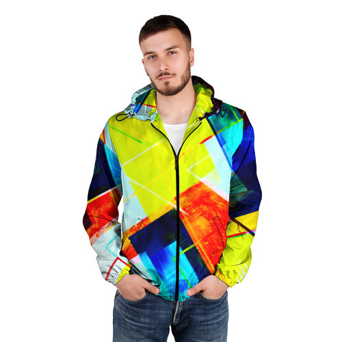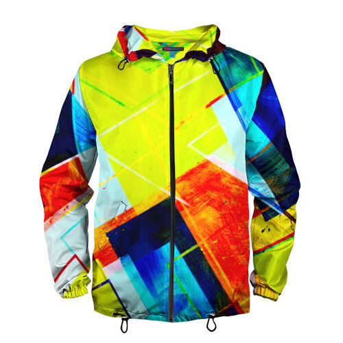 Свободная легкая ветровка с капюшоном, застегивается на молнию. Сшита из плотной ткани, по всей поверхности которой наносится принт. Можно заказать со своим дизайном.