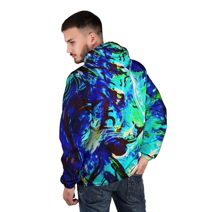 Мужская ветровка 3D с принтом Blue tiger