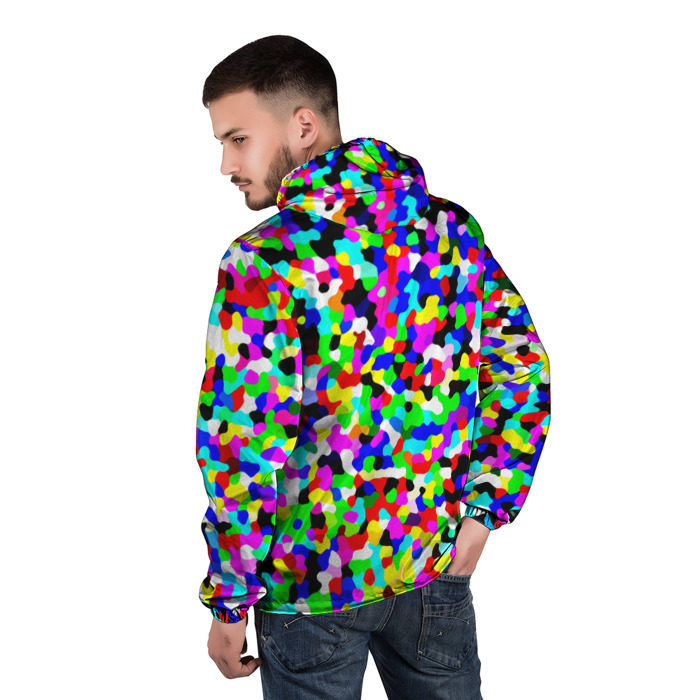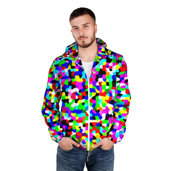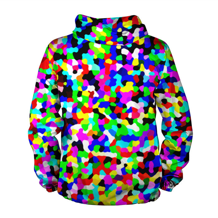 Свободная легкая ветровка с капюшоном, застегивается на молнию. Сшита из плотной ткани, по всей поверхности которой наносится принт. Можно заказать со своим дизайном.